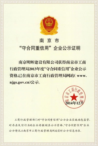 2013年度南京市守合同重信用企業