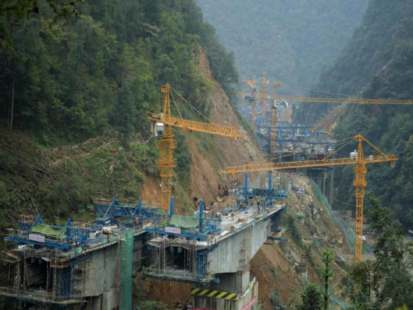 正在加緊建設的巴陜高速四川南江段1173米長的石橋河特大橋